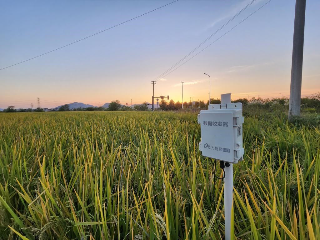 蕪湖三山經濟開發(fā)區(qū)一處稻田里的數(shù)據(jù)收發(fā)器。新華社記者 趙金正 攝