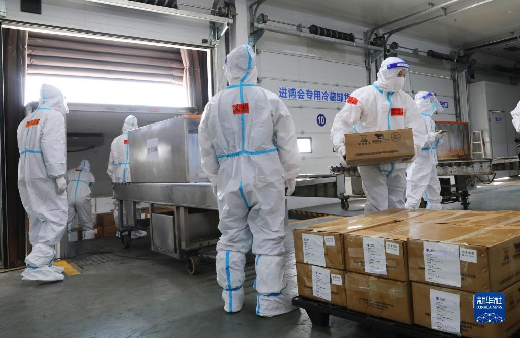 10月20日上午9點(diǎn),第五屆中國(guó)國(guó)際進(jìn)口博覽會(huì)的第一批進(jìn)口冷鏈?zhǔn)称氛蛊繁贿\(yùn)入總倉(cāng)。在接下來的10天內(nèi),預(yù)計(jì)約100個(gè)全球參展商、3000箱冷鏈?zhǔn)称氛蛊?,將在總倉(cāng)集中完成“最小包裝”消毒和核酸檢測(cè)。