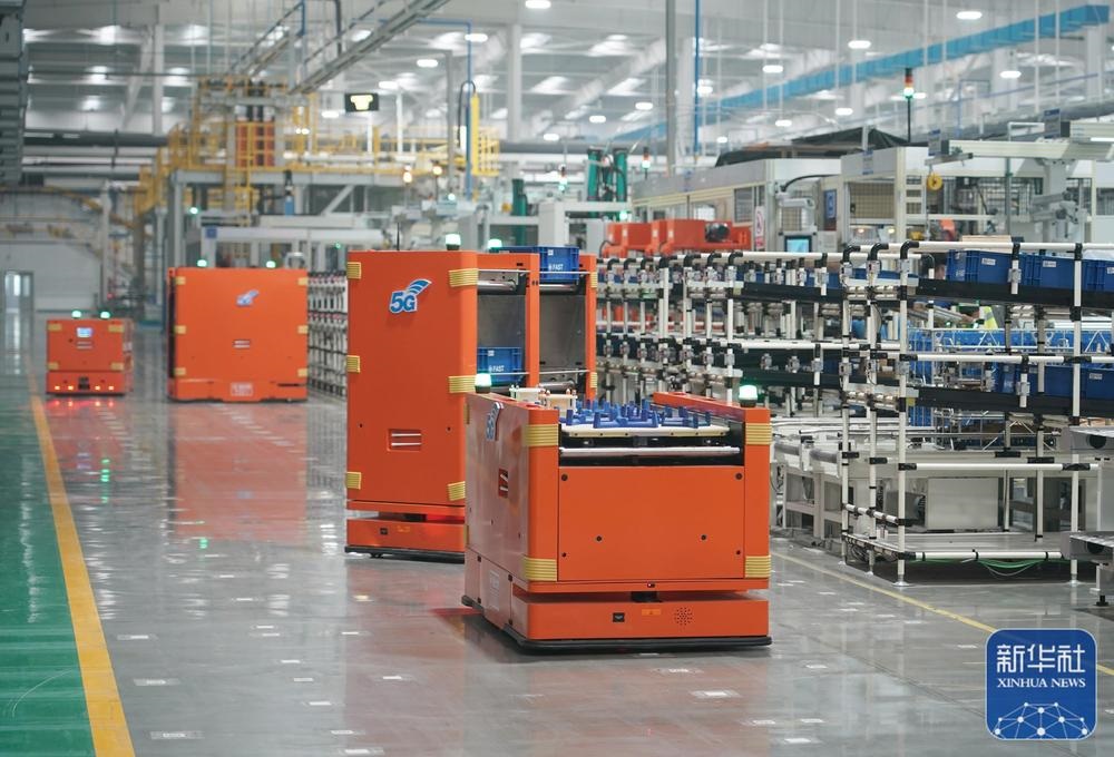 11月9日,智能搬運機器人在位于西安高新區(qū)的法士特高智新工廠項目車間內(nèi)運輸物料。新華社記者 邵瑞 攝
