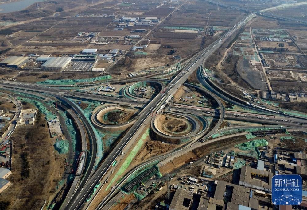 12月15日,工人在石家莊市北三環(huán)與復興大街互通工程建設工地施工(無人機照片)。 新華社記者 楊世堯 攝