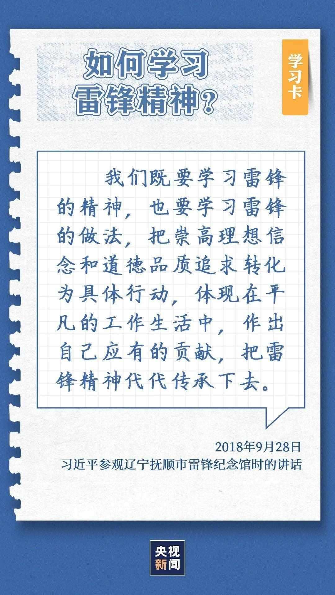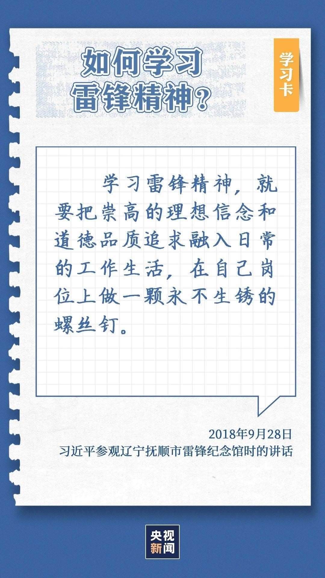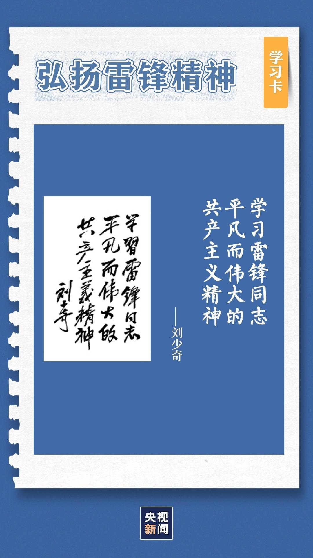 中共中央總書記、國家主席、中央軍委主席習(xí)近平近日作出重要指示指出,今年是毛澤東等老一輩革命家為雷鋒同志題詞60周年。60年來,學(xué)雷鋒活動在全國持續(xù)深入開展,雷鋒的名字家喻戶曉,雷鋒的事跡深入人心,雷鋒精神滋養(yǎng)著一代代中華兒女的心靈。實(shí)踐證明,無論時代如何變遷,雷鋒精神永不過時。在新時代新征程上,如何弘揚(yáng)雷鋒精神?點(diǎn)擊學(xué)習(xí)卡↓