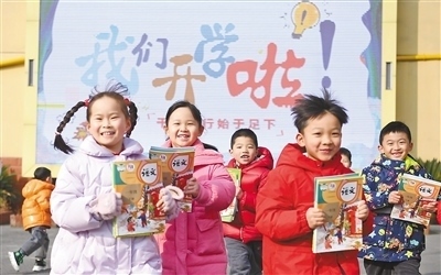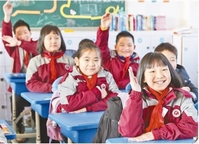 安徽省合肥市蜀山區(qū)北苑村社區(qū)琥珀小學(xué)(東區(qū)),孩子們?cè)谛@里迎接新學(xué)期的到來(lái)。陳三虎攝(影像中國(guó))