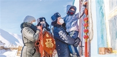 在新疆維吾爾自治區(qū),阿勒泰邊境管理支隊(duì)富蘊(yùn)大隊(duì)吐?tīng)柡檫吘撑沙鏊拿窬妥o(hù)邊員到偏遠(yuǎn)山區(qū)困難群眾家中探訪。李銘驥攝(影像中國(guó))