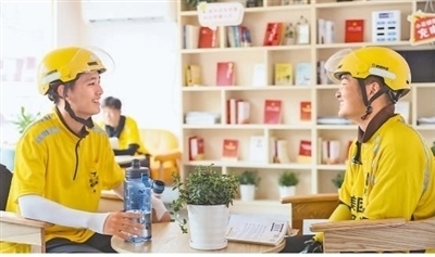 江蘇省淮安市打造集閱讀休息、補(bǔ)給茶水、醫(yī)療等多功能為一體的驛站,為外賣騎手、網(wǎng)約車司機(jī)等新就業(yè)群體從業(yè)人員提供暖心服務(wù)。趙啟瑞攝(人民視覺(jué))