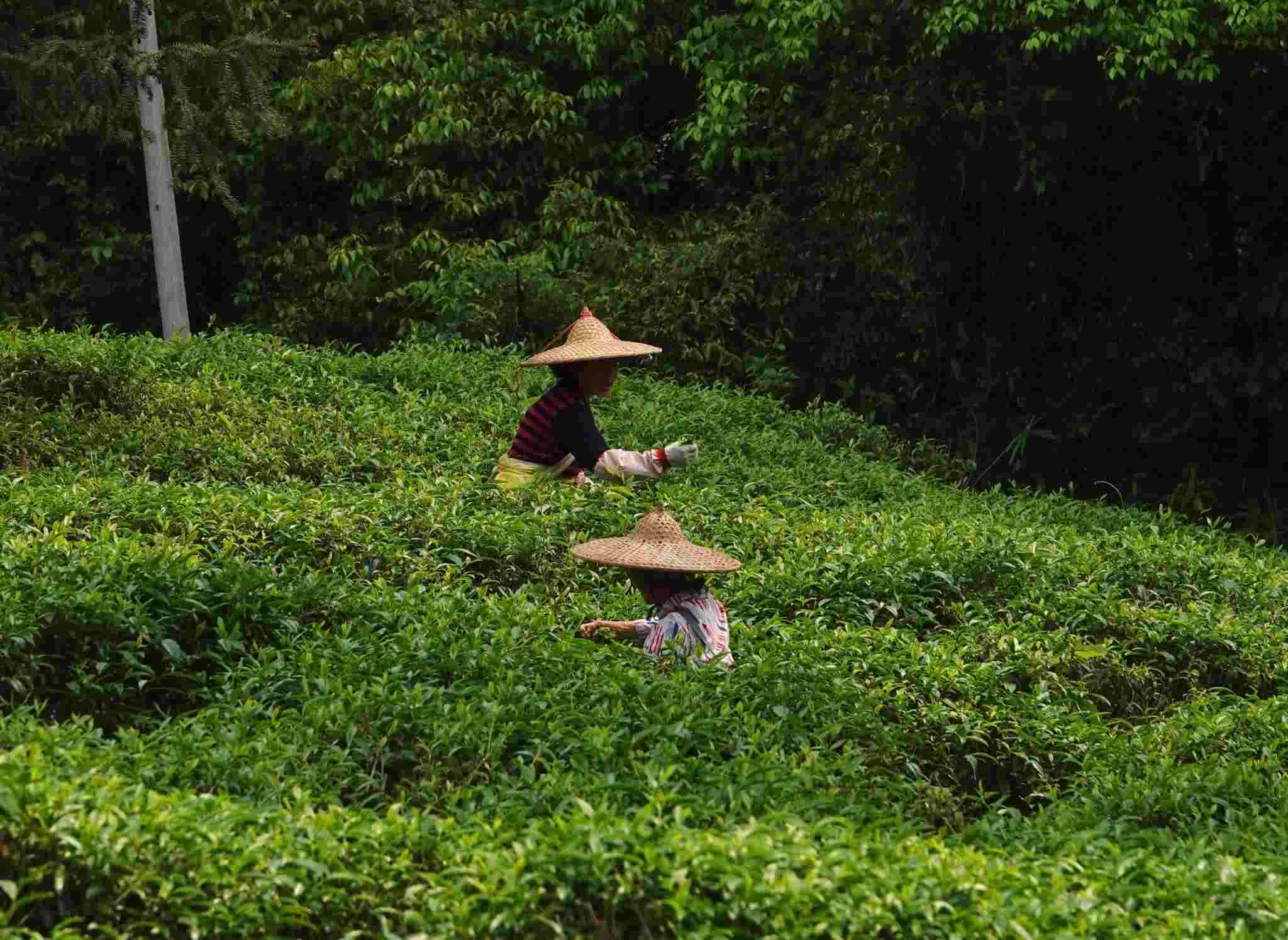 2023年4月13日,廣西賀州,茶鄉(xiāng)昭平縣在持續(xù)了20多天的春雨之后終于放晴,茶農(nóng)上山趕采春茶。視覺中國(guó)