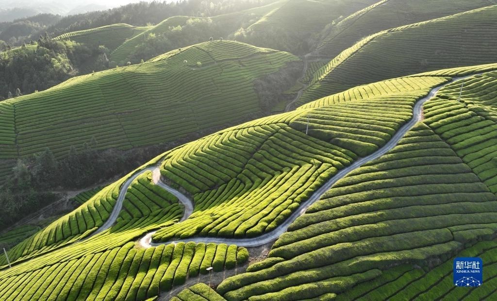 4月16日拍攝的鶴峰縣走馬鎮(zhèn)木耳山茶園(無(wú)人機(jī)照片)。