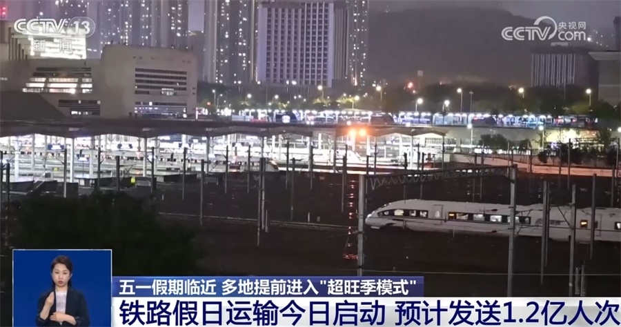 “五一”小長(zhǎng)假期間,全國(guó)鐵路預(yù)計(jì)發(fā)送旅客1.2億人次,較2019年同期增長(zhǎng)20%,超歷史同期最高水平,日均發(fā)送旅客1500萬(wàn)人次。4月29日為客流最高峰日,預(yù)計(jì)發(fā)送旅客超過1900萬(wàn)人次,超歷史最高峰日10%以上。