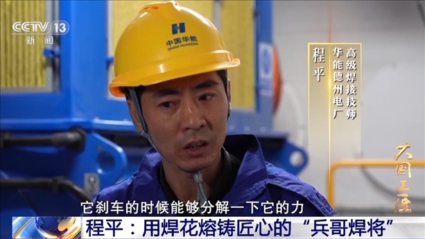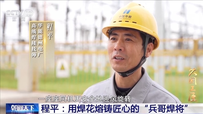 華能德州電廠高級焊接技師 程平:這十來年,新能源迎來了大的發(fā)展,每次看到經(jīng)過我的手,一座座風(fēng)機更安全地迎風(fēng)旋轉(zhuǎn),能夠參與新能源的建設(shè),為國家出一份力,見證它的發(fā)展進程,我感到自己非常驕傲也很自豪。