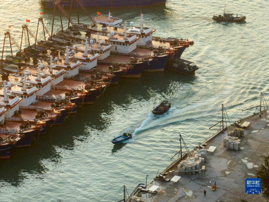 4月30日清晨,在浙江省舟山市普陀區(qū)沈家門漁港,漁船陸續(xù)進(jìn)港準(zhǔn)備休漁(無人機(jī)照片)。