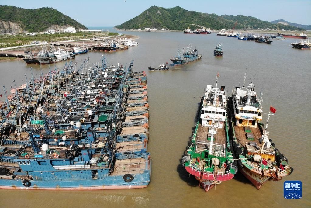 4月30日在浙江省舟山市普陀區(qū)沈家門漁港拍攝的回港停泊的漁船。 新華社發(fā)(邢守秒攝)