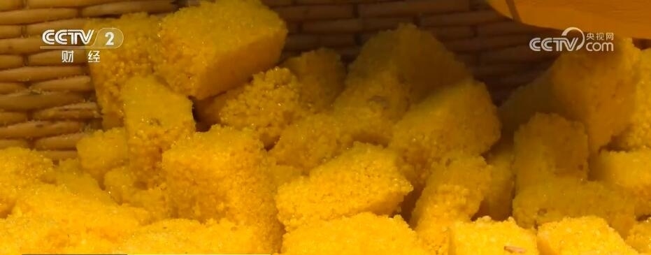在這條街區(qū),你還可以找到各種陜西特色美食的身影。這種色澤金黃的美食叫陜北小米酥,現(xiàn)場制作,入口酥脆。這個“五一”假期,很多游客一路逛一路吃,走的時候還會給家里人帶上幾盒。