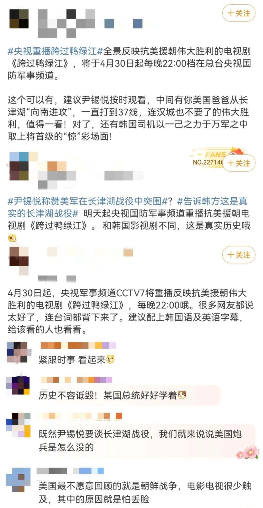 新加坡《聯(lián)合早報(bào)》更在4月30日晚10點(diǎn)準(zhǔn)時(shí)發(fā)布文章《電視劇<跨過(guò)鴨綠江>將在中國(guó)央視重播》,開(kāi)篇明確重點(diǎn):在韓國(guó)總統(tǒng)稱(chēng)贊美國(guó)海軍陸戰(zhàn)隊(duì)第一師在長(zhǎng)津湖戰(zhàn)役中的表現(xiàn)后,中國(guó)央視稱(chēng)將從星期天(4月30日)起重播電視劇《跨過(guò)鴨綠江》。