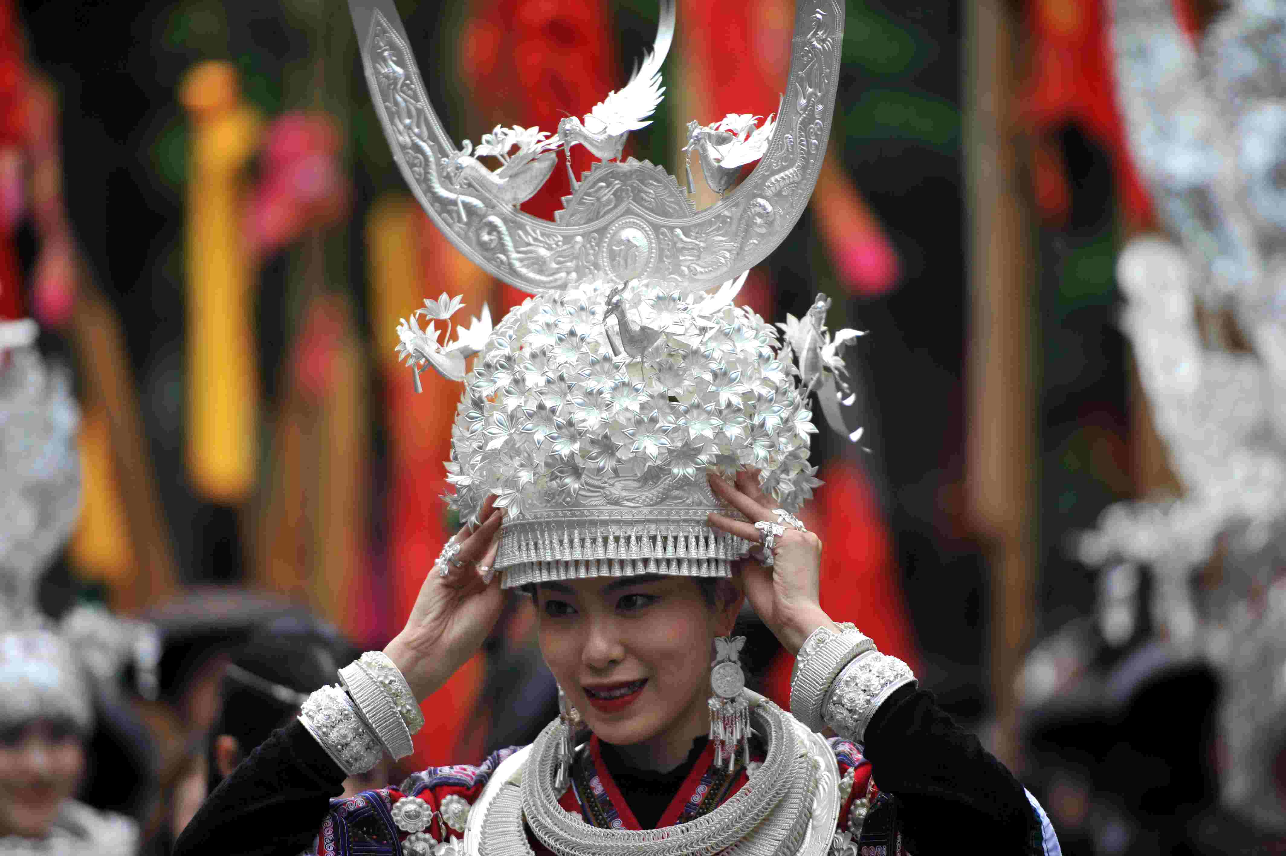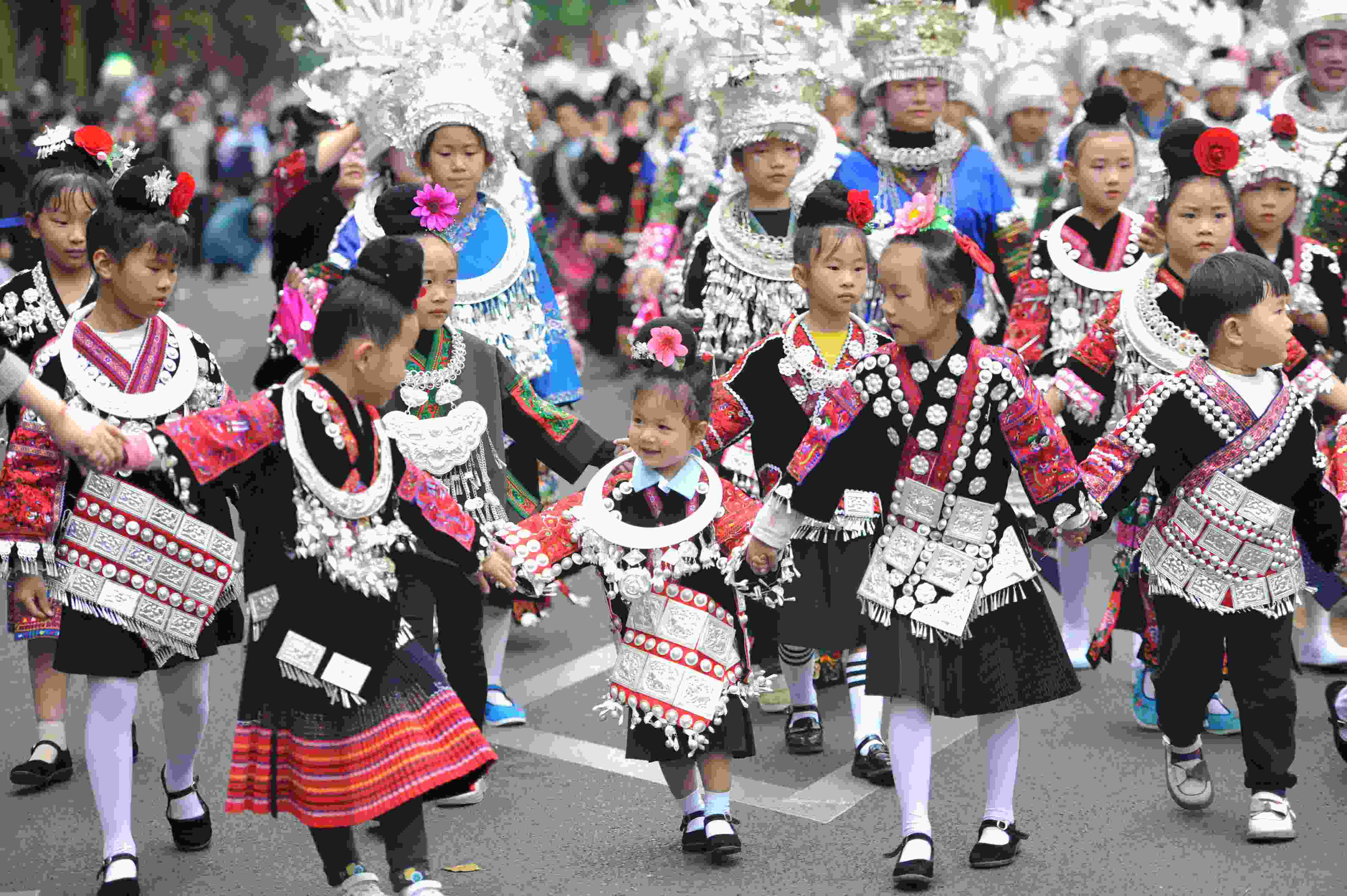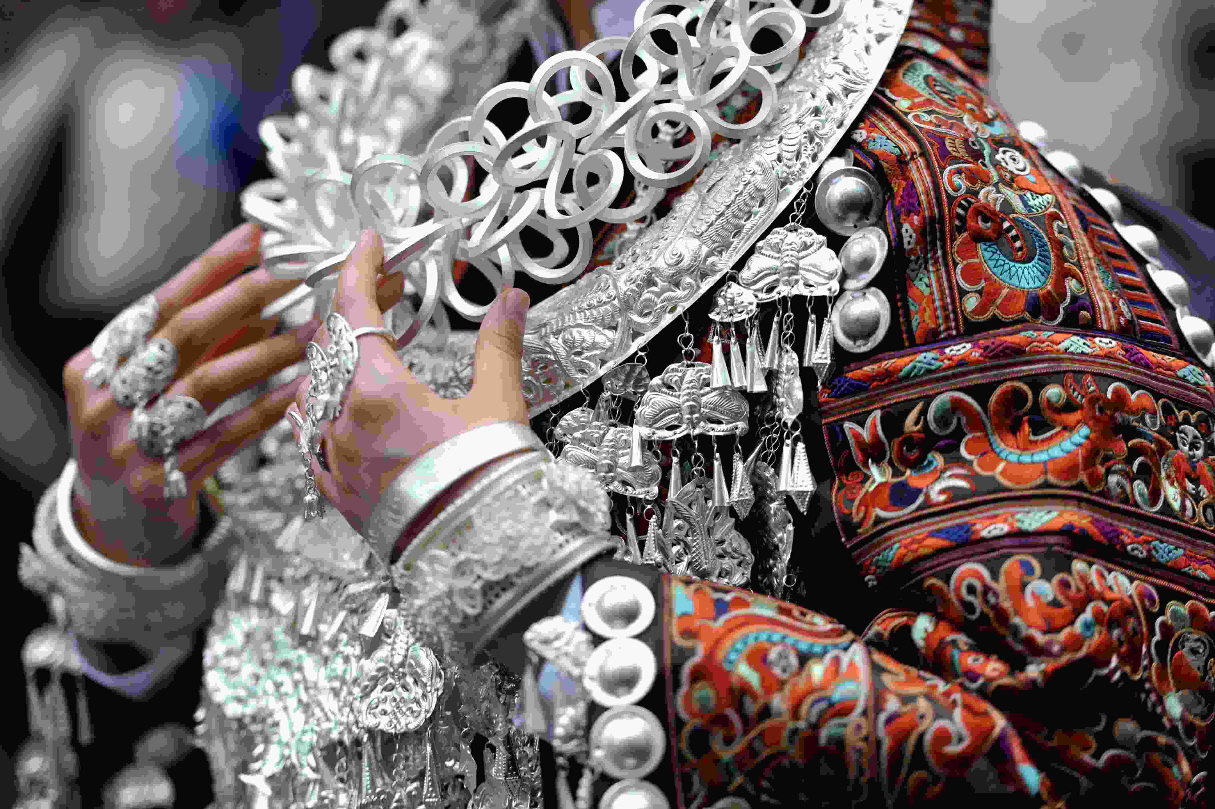 貴州省臺江縣苗族文化豐富多彩厚重,其服飾是苗族文化的重要載體,苗族女子服飾以靚麗的銀飾、精美的刺繡和獨(dú)特的審美文化內(nèi)涵而被稱為“穿在身上的史書”,成為識別苗族9大支系的重要標(biāo)識,具有極高的藝術(shù)、觀賞和收藏價值。 (寧堅)
