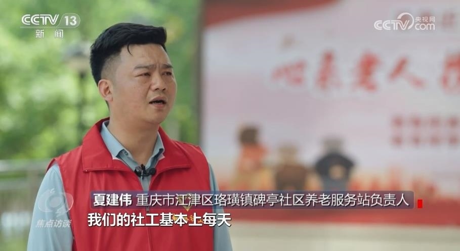 重慶市江津區(qū)珞璜鎮(zhèn)碑亭社區(qū)養(yǎng)老服務站負責人夏建偉:“一天下來,滿滿當當?shù)模覀兊纳绻せ旧厦刻於汲^了兩萬三千步的樣子。雖然說很累,但是每一個社工都很愉快,都覺得在這個過程當中找到了快樂,也找到了成就感?!?/p>