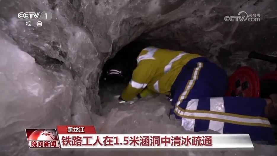 【黑龍江】鐵路工人在1.5米涵洞中清冰疏通