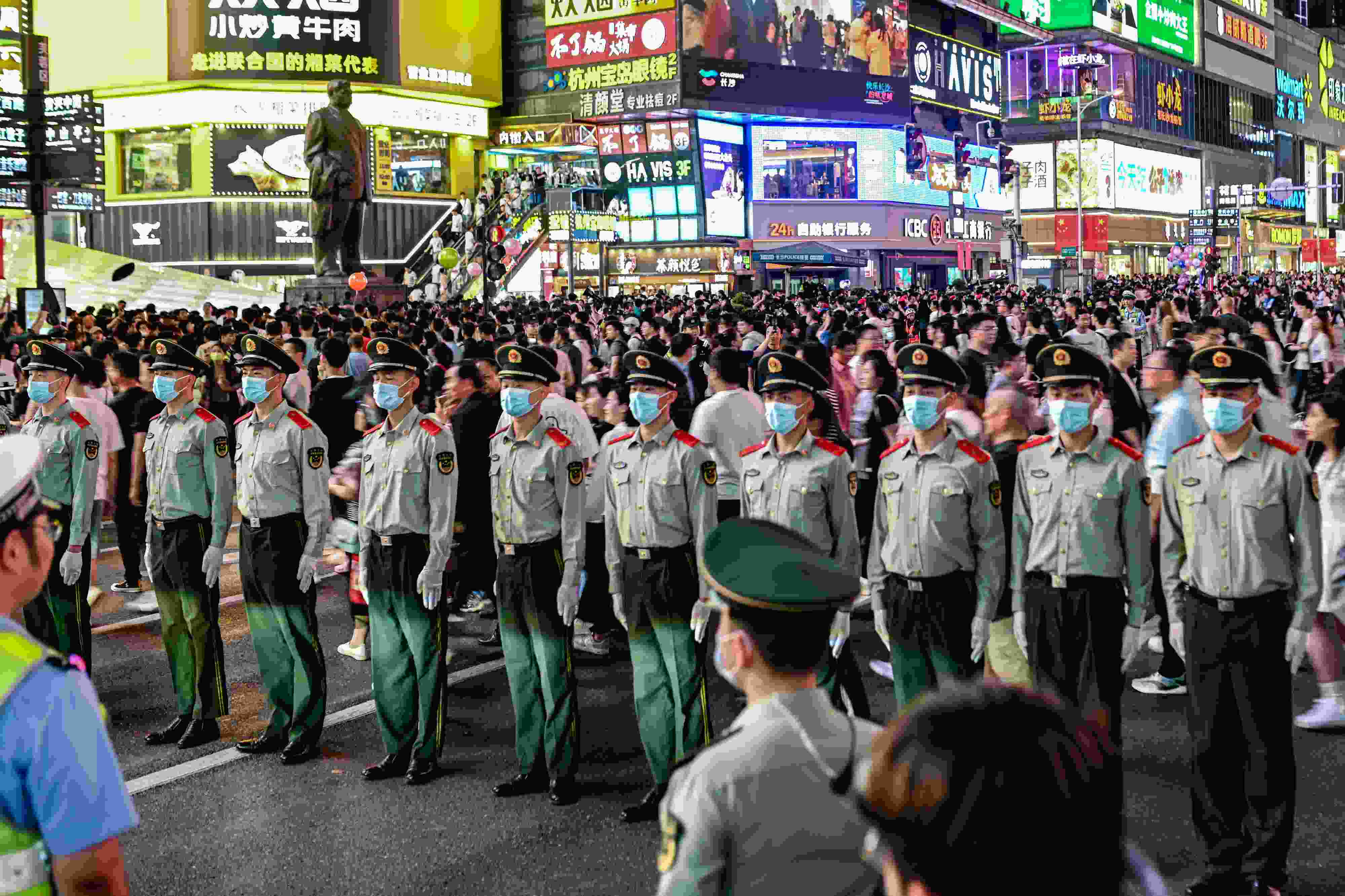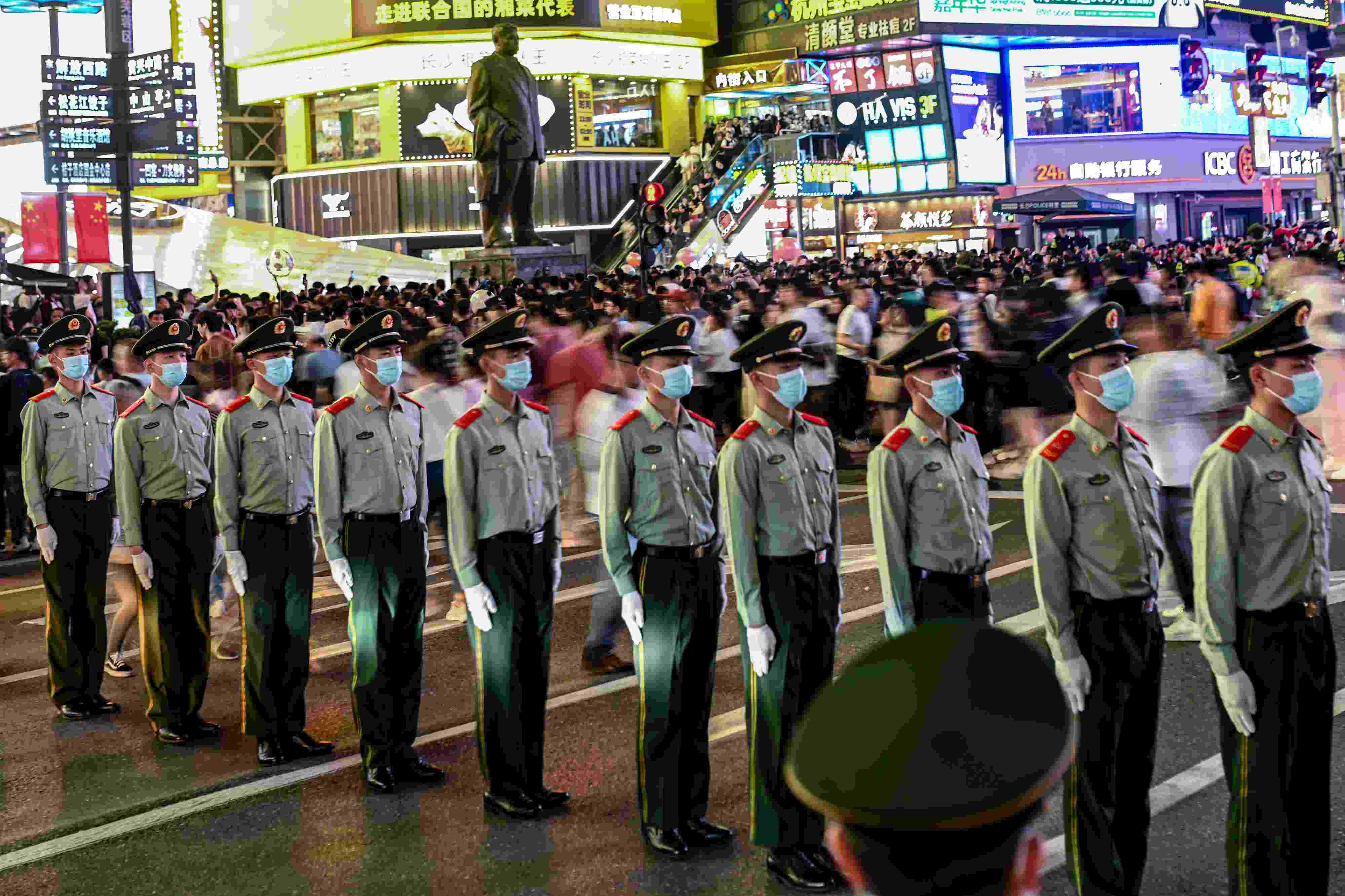 長沙:武警筑起“最美人墻” 守護(hù)游客安全