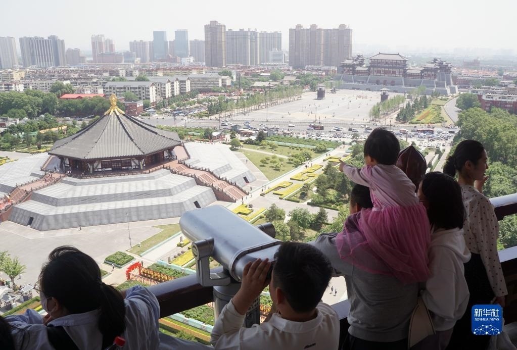 5月1日,游客在河南洛陽隋唐洛陽城國家遺址公園游覽。