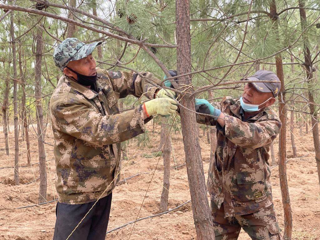 面龐黝黑的丁河勇在白芨灘工作了31年,治沙的情懷像樹苗一樣扎根在這片土地?!昂亲o這些樹苗就像呵護我的孩子一樣,修剪、澆灌、補植、病蟲害防治,絲毫馬虎不得。我已經(jīng)習慣了與樹為伴的生活,隔兩天不上山看看林子,心里就不踏實。”他說。