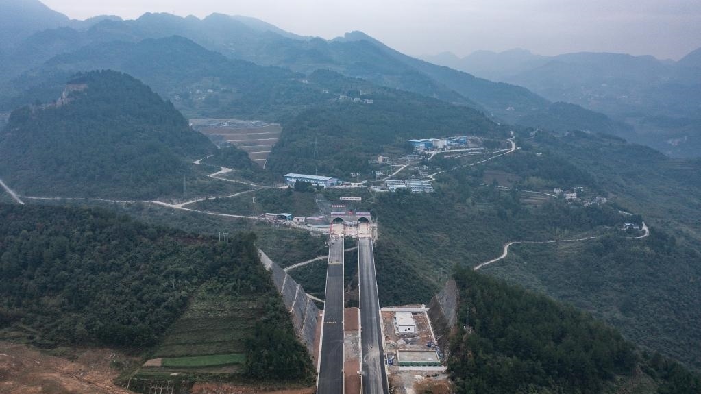 這是2022年10月13日拍攝的蘭州至??趪?guó)家高速公路重慶至遵義段(貴州境)擴(kuò)容工程項(xiàng)目桐梓隧道。當(dāng)日,桐梓隧道右幅順利貫通。新華社記者 陶亮 攝