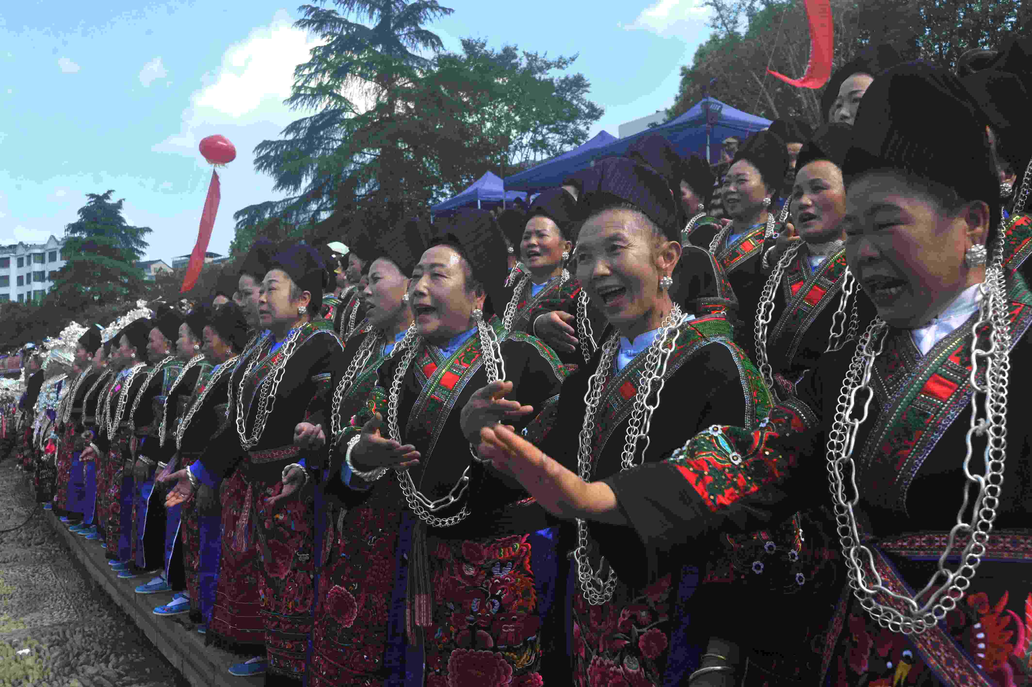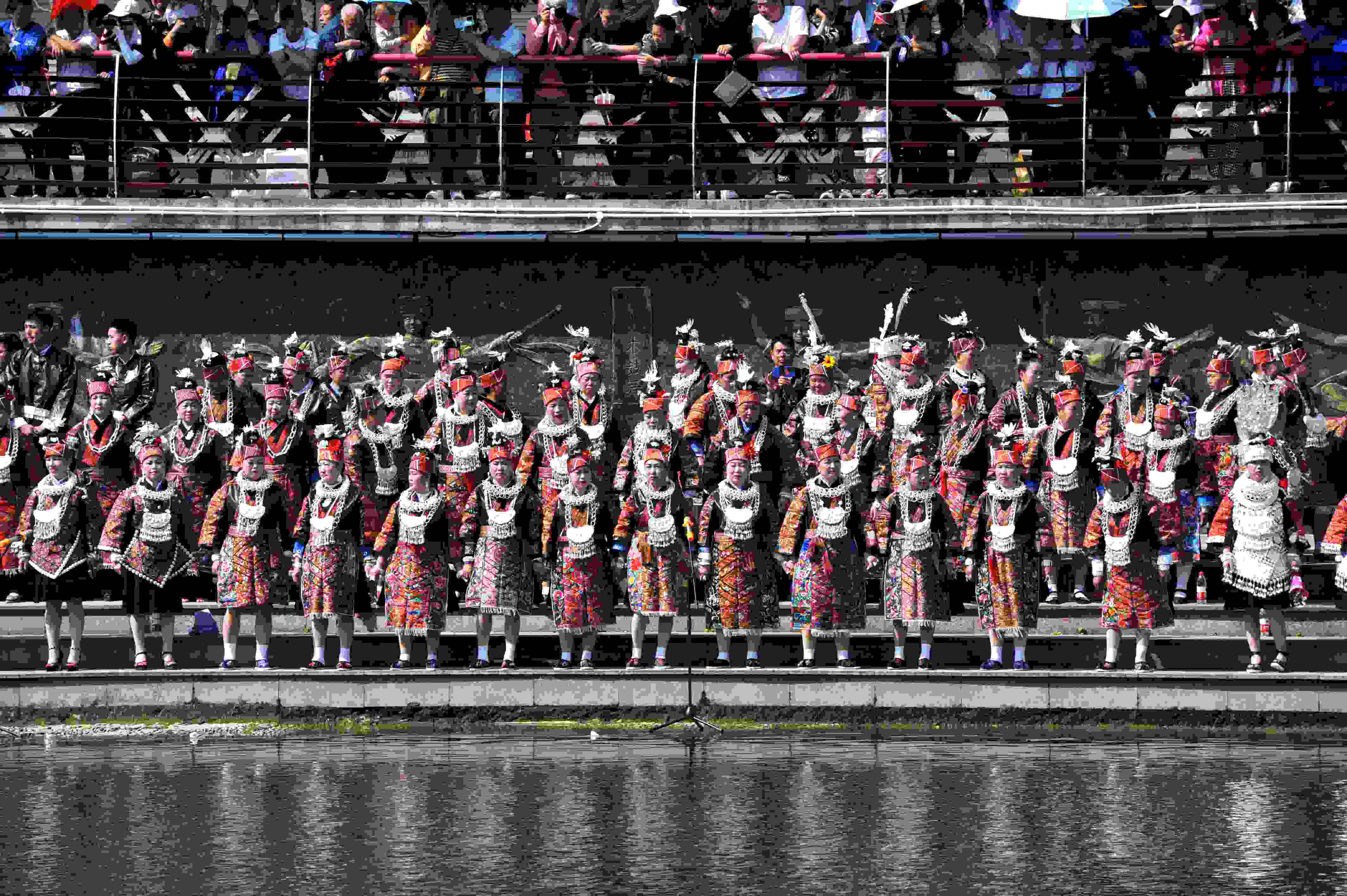 2023年5月3日,苗族同胞在貴州省臺(tái)江縣翁你河畔對(duì)唱苗歌。當(dāng)日,貴州省臺(tái)江縣九個(gè)苗族支系的萬(wàn)余名苗族男女歌手齊聚縣城翁你河畔,對(duì)唱苗族古歌、苗族多聲部情歌和飛歌,向世人展示古樸濃厚的苗族文化底蘊(yùn)。 (寧堅(jiān) 鄧永生)
