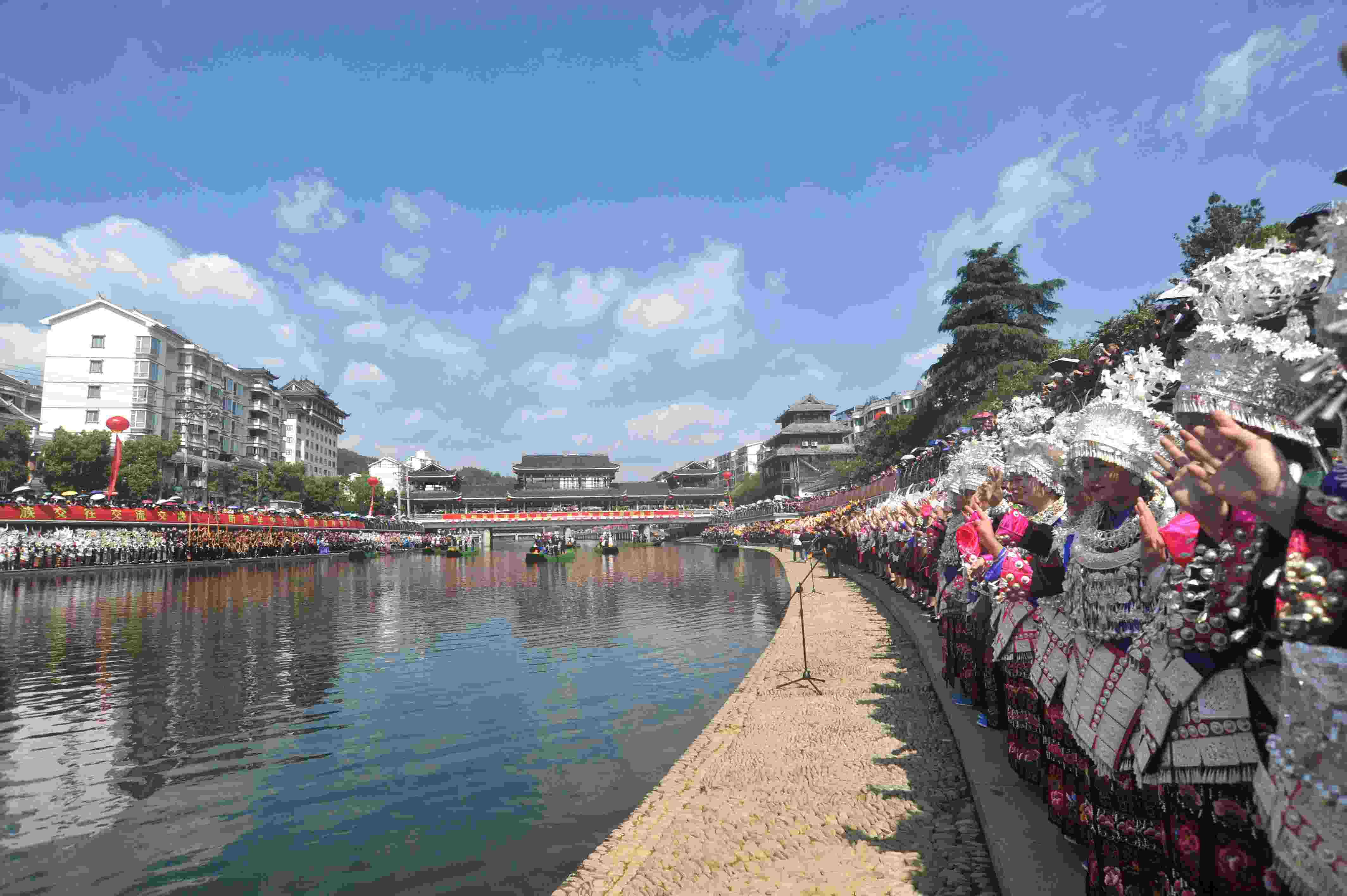 貴州臺(tái)江:翁你河畔上演萬(wàn)人苗歌對(duì)唱