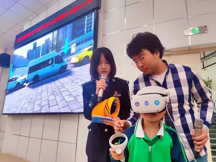 今天(5月4日)是五四青年節(jié),北京警察學(xué)院大學(xué)生交通安全宣講團(tuán)來到昌平流村小學(xué),開展“大學(xué)生牽手小學(xué)生,知危險會避險”的主題宣傳活動,通過文藝表演、VR實(shí)景體驗(yàn)、情景劇以及多種交通安全體驗(yàn)類的游戲講解交通安全知識,以這種特殊的方式慶祝自己的節(jié)日。