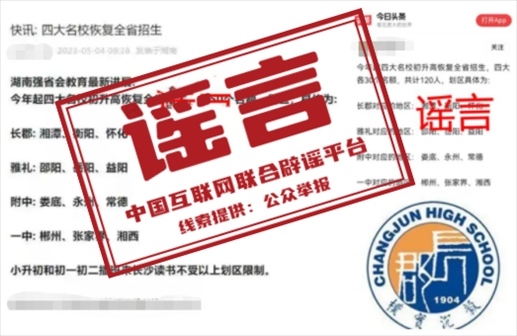 謠言:長(zhǎng)沙“四大名校”初升高恢復(fù)全省招生?