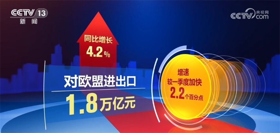 同期,東盟繼續(xù)為我國(guó)第一大貿(mào)易伙伴,對(duì)東盟進(jìn)出口2.09萬(wàn)億元,同比增長(zhǎng)13.9%,占我國(guó)外貿(mào)總值的15.7%;對(duì)歐盟進(jìn)出口1.8萬(wàn)億元,同比增長(zhǎng)4.2%,增速較一季度加快2.2個(gè)百分點(diǎn)。