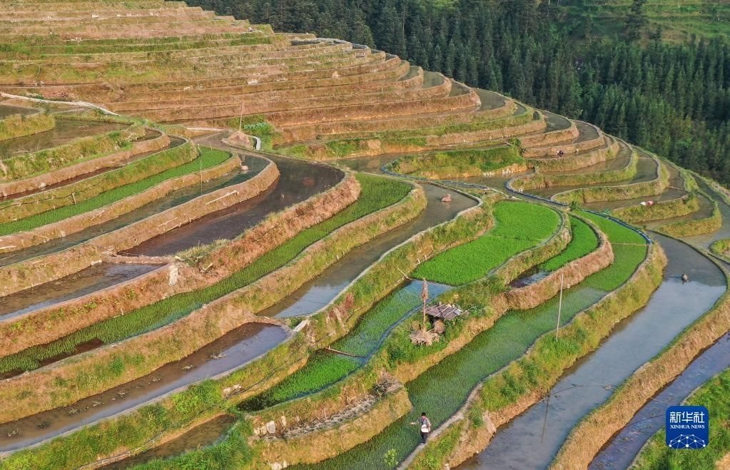 5月6日拍攝的貴州省從江縣加榜鄉(xiāng)加車村的梯田(無人機照片)。