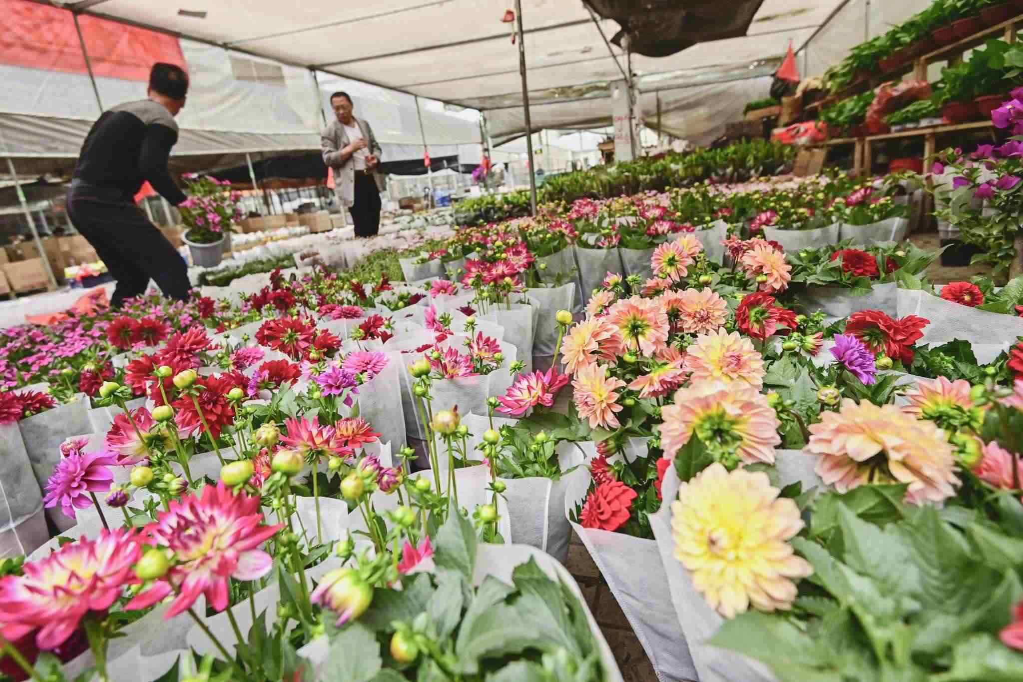 山東濰坊:母親節(jié)臨近 花卉市場(chǎng)生意紅火