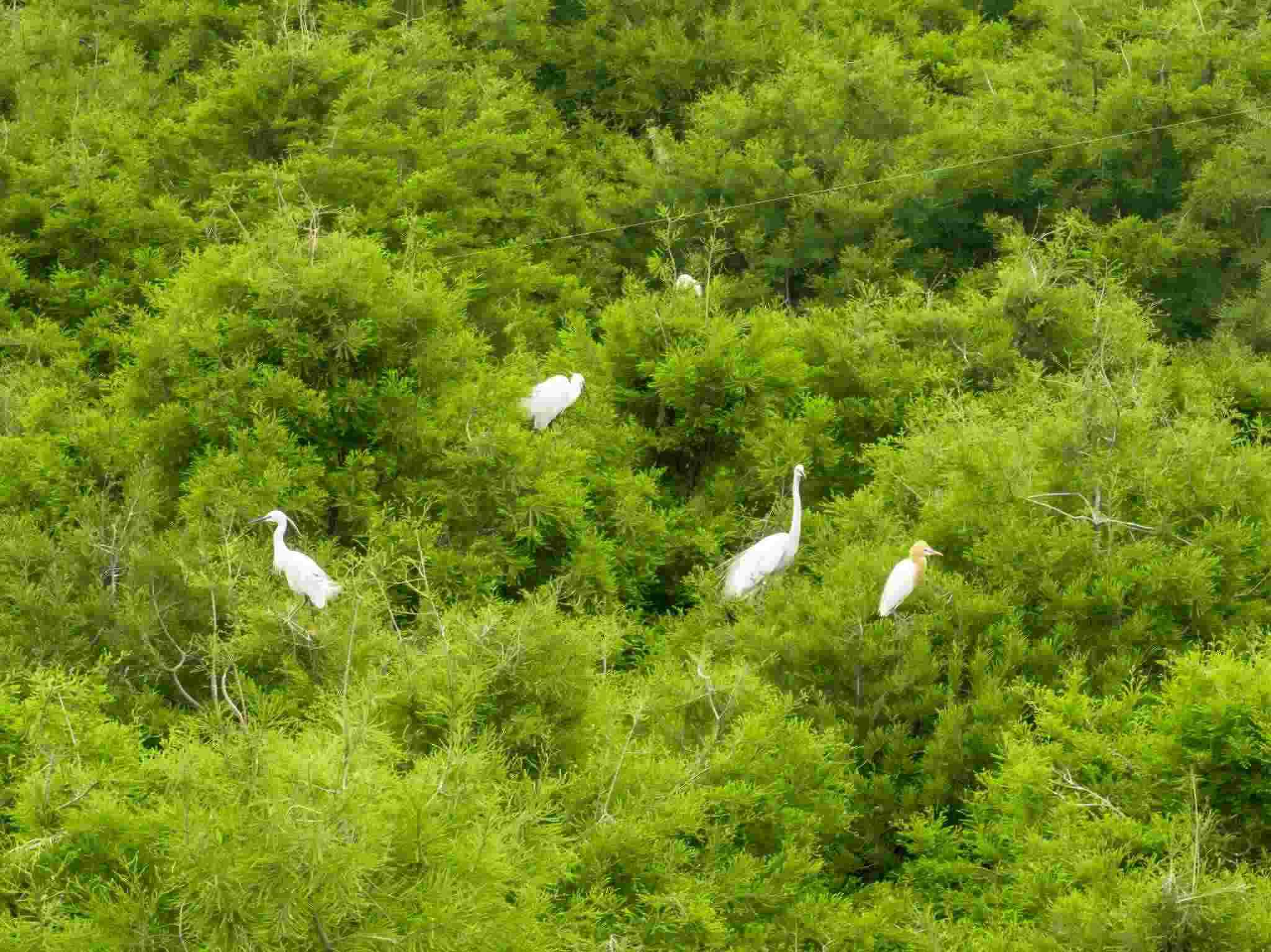 2023年5月11日,江蘇連云港,東海縣西雙湖濕地公園,上千只鷺鳥前來(lái)?xiàng)⒎毖?。視覺中國(guó)