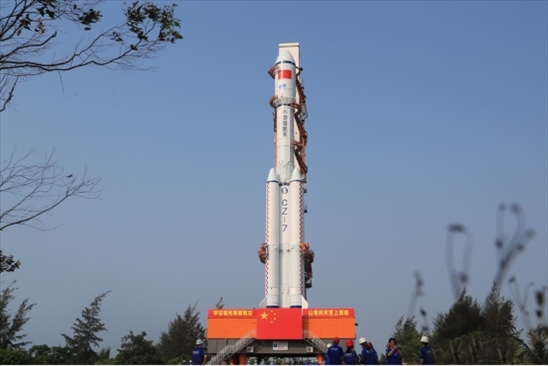 夜幕中,發(fā)射塔架格外明亮,塔架“懷抱”中,長征七號火箭劍指蒼穹,天舟六號貨運飛船已經(jīng)進入發(fā)射倒計時。