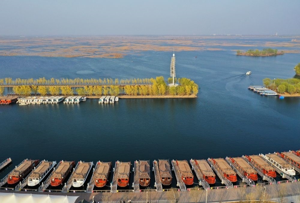 雄安新區(qū)白洋淀景區(qū)(2023年3月30日攝,無人機(jī)照片)。新華社記者 牟宇 攝