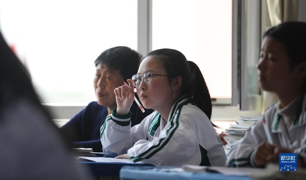 張連琴(左)和女兒李昕偉在教室內(nèi)聽課(5月8日攝)。
