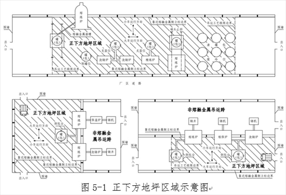(二)生產(chǎn)期間冶煉、精煉和鑄造生產(chǎn)區(qū)域的事故坑、爐下渣坑,以及熔融金屬泄漏和噴濺影響范圍內(nèi)的爐前平臺(tái)、爐基區(qū)域、廠房內(nèi)吊運(yùn)和地面運(yùn)輸通道等6類區(qū)域存在積水的。