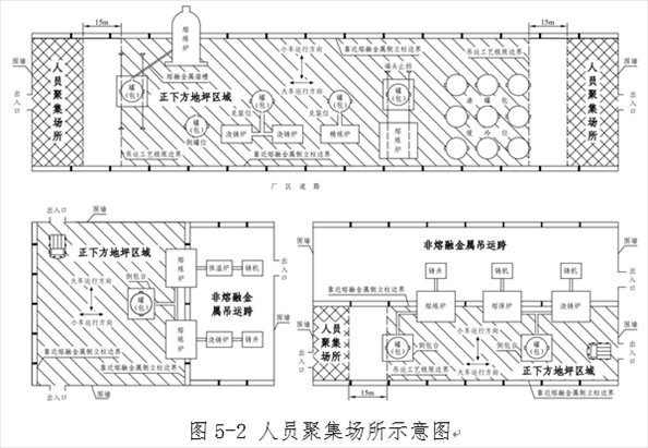 (一)會(huì)議室、活動(dòng)室、休息室、操作室、交接班室、更衣室(含澡堂)等6類人員聚集場所設(shè)置在熔融金屬吊運(yùn)跨的地坪區(qū)域內(nèi)的。