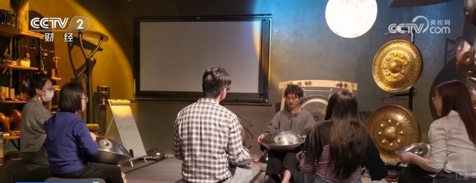 傳統(tǒng)小店被賦予了新場景的同時,一些新奇有趣的業(yè)態(tài)也找到了生存的土壤。晚上7點30分,在上海長寧區(qū)的一個寫字樓里,一場手碟培訓課正在進行中。席地而坐的竹席、深灰色的墻面和月球燈營造出治愈沉靜的氣氛,手碟空靈的聲音不時響起。