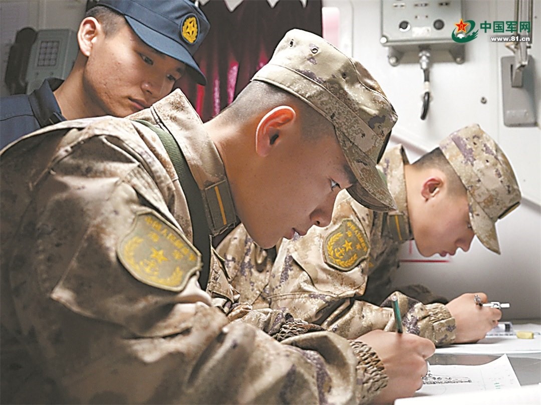 在海上訓(xùn)練中,學(xué)員與艦員一同操艦、一同值更,除進(jìn)行艦艇機(jī)動(dòng)繪算、指定錨位拋錨等日常航??颇坑?xùn)練外,還參加了主炮對(duì)海射擊、導(dǎo)彈搜索與攻擊、對(duì)潛搜索與攻擊等戰(zhàn)斗航??颇坑?xùn)練,將理論知識(shí)轉(zhuǎn)化為實(shí)戰(zhàn)能力,為畢業(yè)后崗位任職打下基礎(chǔ)。