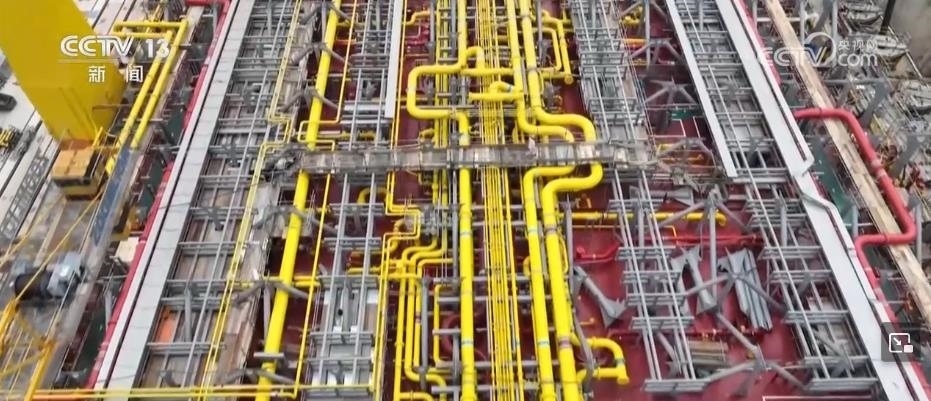 這艘船除了大,技術(shù)也十分先進(jìn)。這上面有一些密密麻麻的管道,是用來處理加工從海底開采出來的原油,再進(jìn)行提煉、分離。其實,我們可以通俗理解它就是一個海上可以移動的化工廠。