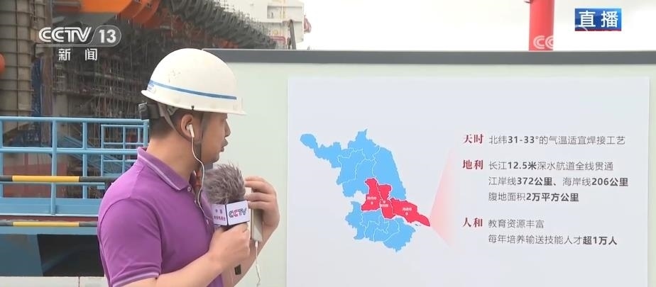 總臺記者 唐高林:我現(xiàn)在是在位于長江入海口的一家船舶制造企業(yè),高質(zhì)量發(fā)展調(diào)研行的團(tuán)隊,正在這里調(diào)研。這幾天調(diào)研團(tuán)一路沿江而下,從南京到揚(yáng)州再到無錫等多個城市,看到了江蘇作為制造業(yè)大省,持續(xù)推進(jìn)“產(chǎn)業(yè)強(qiáng)鏈補(bǔ)鏈”計劃,實體經(jīng)濟(jì)呈現(xiàn)出良好的發(fā)展態(tài)勢。