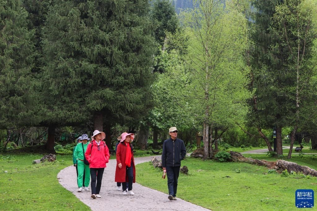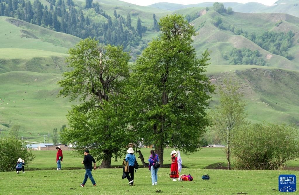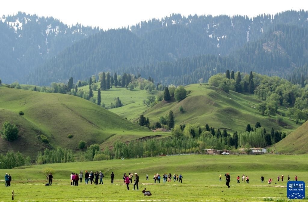 5月19日,游客在位于新疆新源縣的那拉提旅游風景區(qū)觀光。