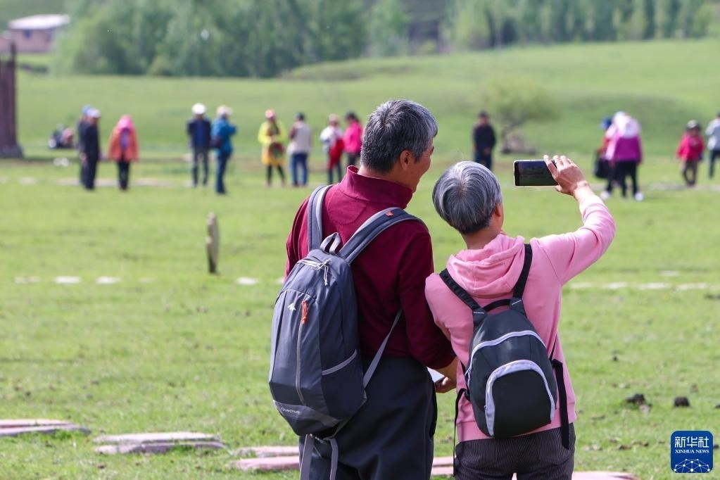 5月20日,游客在位于新疆新源縣的那拉提旅游風景區(qū)觀光。