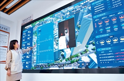 福建省福州市鼓樓區(qū)是國(guó)家智能社會(huì)治理綜合實(shí)驗(yàn)基地,社區(qū)工作者在鼓樓區(qū)鼓東街道中山社區(qū)介紹“智慧社區(qū)”建設(shè)情況(2023年4月25日攝)林善傳攝/本刊