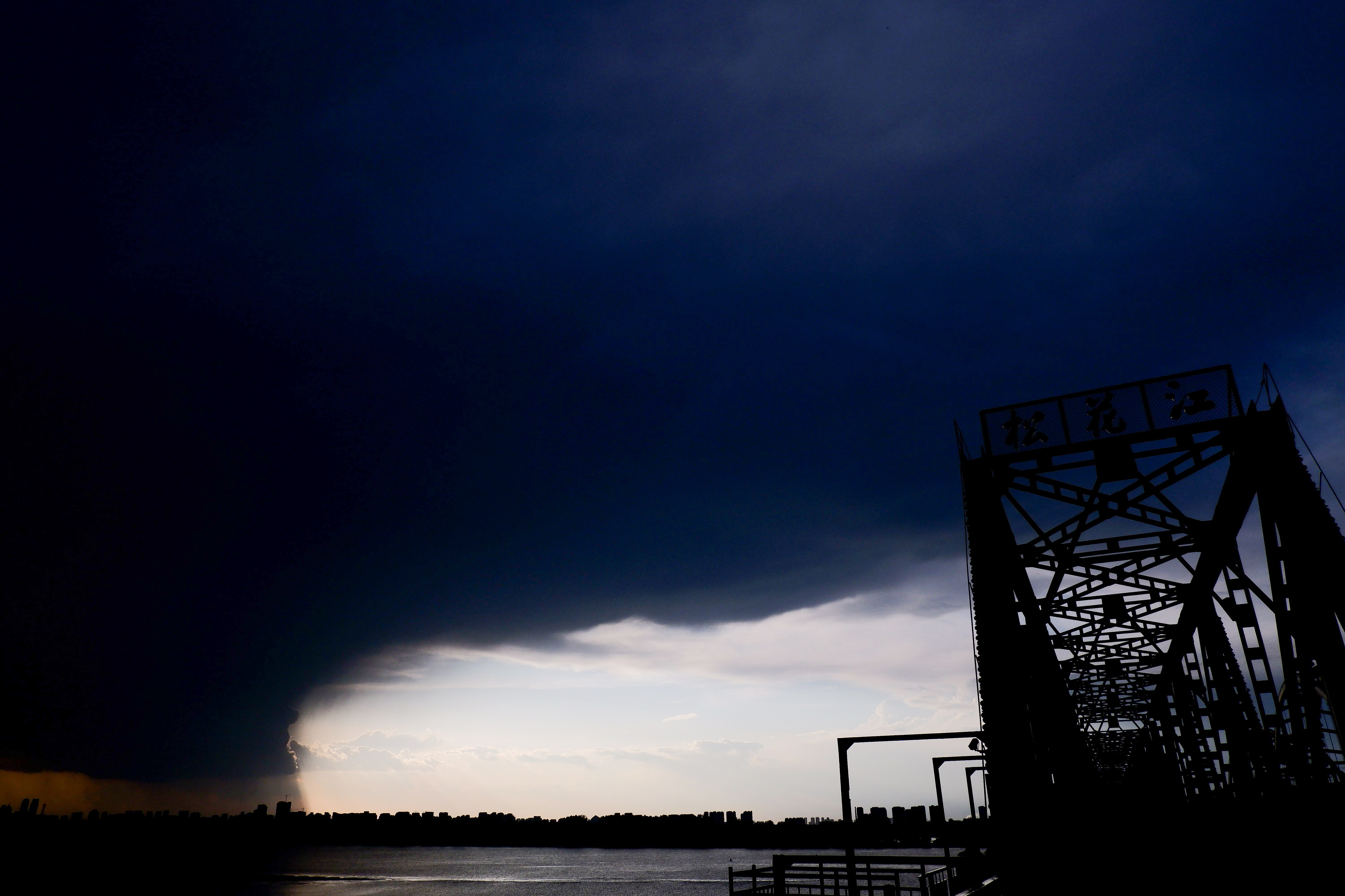 5月21日下午,黑龍江省哈爾濱市迎來強(qiáng)降雨天氣,整座城市被雷暴云籠罩,白晝?nèi)缫?,宛如上演科幻大片? (吳胡荼 攝)