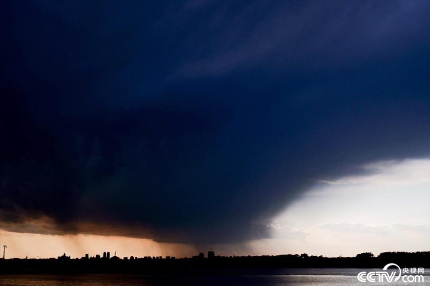 5月21日下午,黑龍江省哈爾濱市迎來強降雨天氣,整座城市被雷暴云籠罩,白晝?nèi)缫?,宛如上演科幻大片?br>