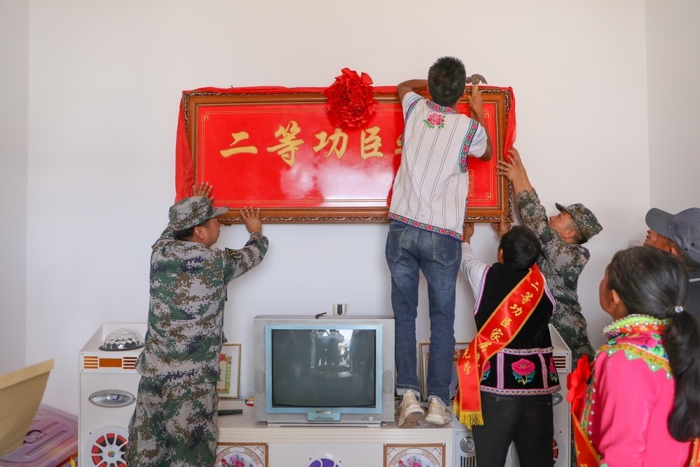 鑼鼓喧天,鞭炮齊鳴。近日,云南省楚雄彝族自治州大姚縣桂花鎮(zhèn)大河村張燈結(jié)彩、熱鬧非凡,武警云南總隊(duì)昭通支隊(duì)派出送喜報(bào)小分隊(duì)輾轉(zhuǎn)600余公里來到這里,聯(lián)合當(dāng)?shù)厝宋洳亢屯艘圮娙耸聞?wù)局,為榮立個(gè)人二等功的現(xiàn)役軍人鄒永金的家屬送去喜報(bào)、牌匾和慰問金。