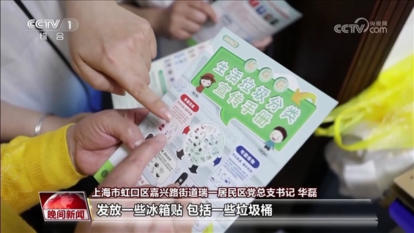 上海市虹口區(qū)嘉興路街道瑞一居民區(qū)黨總支書(shū)記 華磊:有的居民,他一開(kāi)始就是不知道這個(gè)垃圾分類(lèi)是怎么分類(lèi)的。那么,我們就會(huì)挨家挨戶從黨員家庭開(kāi)始做起,然后來(lái)帶頭。每個(gè)樓我們都有每個(gè)樓的志愿者來(lái)上門(mén)發(fā)放一些冰箱貼,包括一些垃圾桶,或者是小的一些蓋子等等的,來(lái)幫助大家。