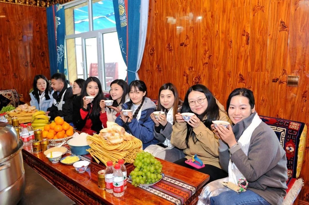 ▲韓美林團(tuán)隊(duì)的工作人員品嘗香氣撲鼻的奶茶