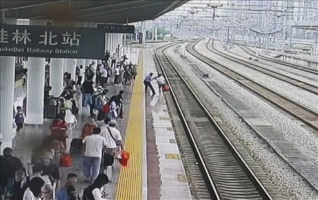·桂林北站一乘客欲跳入股道輕生,被工作人員和乘客制止。