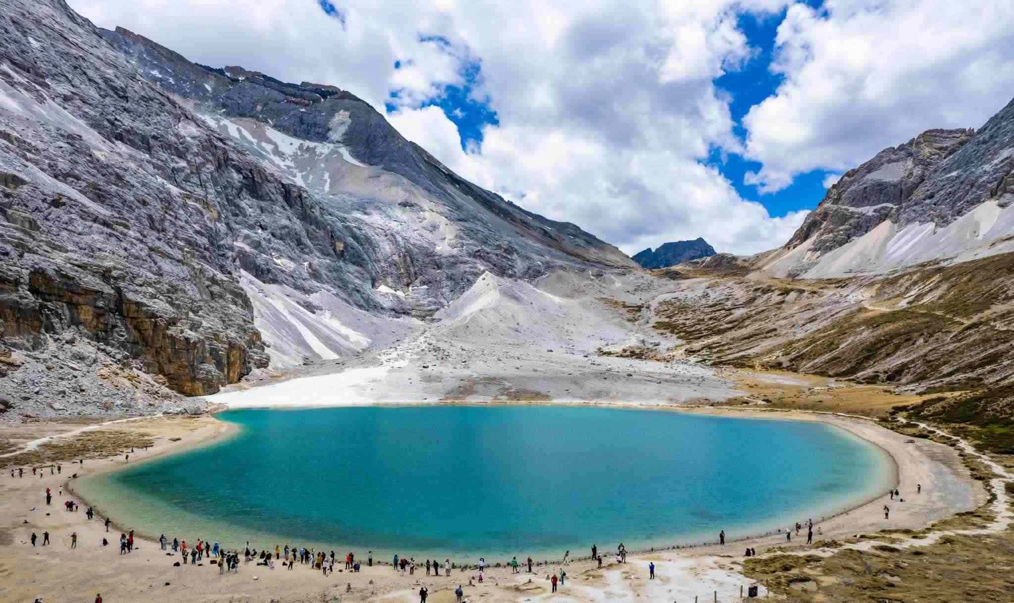 2023年5月25日,四川甘孜,航拍稻城縣亞丁自然保護(hù)區(qū)的牛奶海景區(qū)。視覺中國